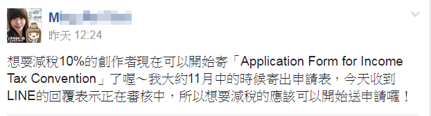 LINE - 你畫的貼圖/主題還被扣20.42%稅嗎? 臺日雙重課稅減免10%將於2017/1/1開始上路 附申請圖文教學(Application Form for Income Tax Convention)