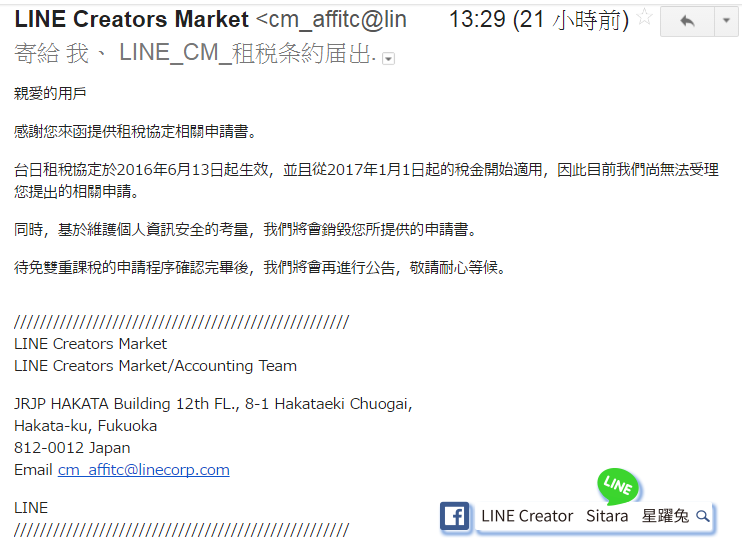 LINE - 你畫的貼圖/主題還被扣20.42%稅嗎? 臺日免雙重課稅將於2017/1/1開始上路 附申請圖文教學(Application Form for Income Tax Convention)